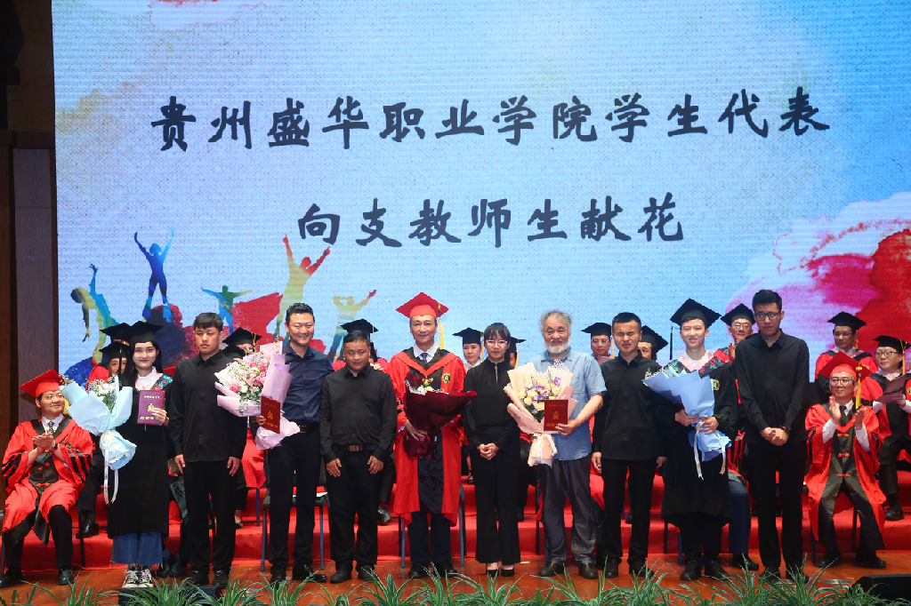 此外,林在勇向贵州盛华职业学校支教师生颁奖,贵州盛华职业学校学生代表向支教师生赠送鲜花。