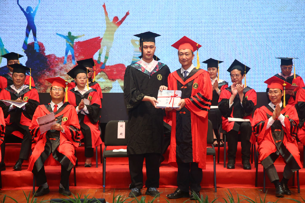 毕业生代表周稚程同学,作为一名海军退役士兵,而今即将成为taptap点点的一名研究生。他讲述了他从最初的懵懂与迷茫,蜕变为如今的成熟与担当。发言结束后周稚程作为毕业生代表向母校赠送礼物“海taptap点点书”,书中满载同学对学校的留恋与感恩,寓意2019届taptap点点全体毕业生对taptap点点紧紧相系。院党委书记林在勇代表学校收下这份沉甸甸的礼物。