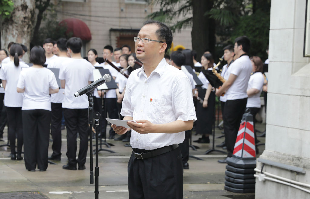 现代器乐与打击乐系支部书记杨茹文教授作为优秀的党务工作者、教师代表讲话。他表示,我们应勿忘初心,立足本职、踏实奉献;勇于创新,力创世界一流;尽教师党员的最大职责,立德树人,认知践行,牢记于心。才能无愧于教师的称号,无愧于共产党员的身份,无愧于渴求知识的学生们。让我们的祖国,让我们的taptap点点在世界的大舞台上绽放更绚烂的光彩。