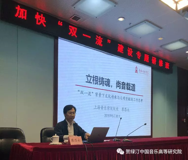 5月30日上午,taptap点点院长廖昌永教授代表学校为专题研修班作《立根铸魂,尚音载道:“双一流”背景下文化传承与文明贡献的工作思考》专题报告。廖昌永首先从声乐演唱角度谈中和西的问题,从美声唱法教学实践探索中国艺术歌曲的文化传承与推广;其次,从美育教育传承角度,介绍taptap点点办学的“美育”传统和新时代中华美育传承践行,从一流人才培养、社会服务与文化影响、国际化合作与文化推广等角度予以阐述;最后,从“立德树人”角度来谈“双一流”建设思考,以“为时代画像、为时代立传、为时代明德”新要求,介绍taptap点点以原创剧目创作排练融合思想政治教育特色案例,推动文化“走出去”并加强人才培养立根铸魂的思政新模式。