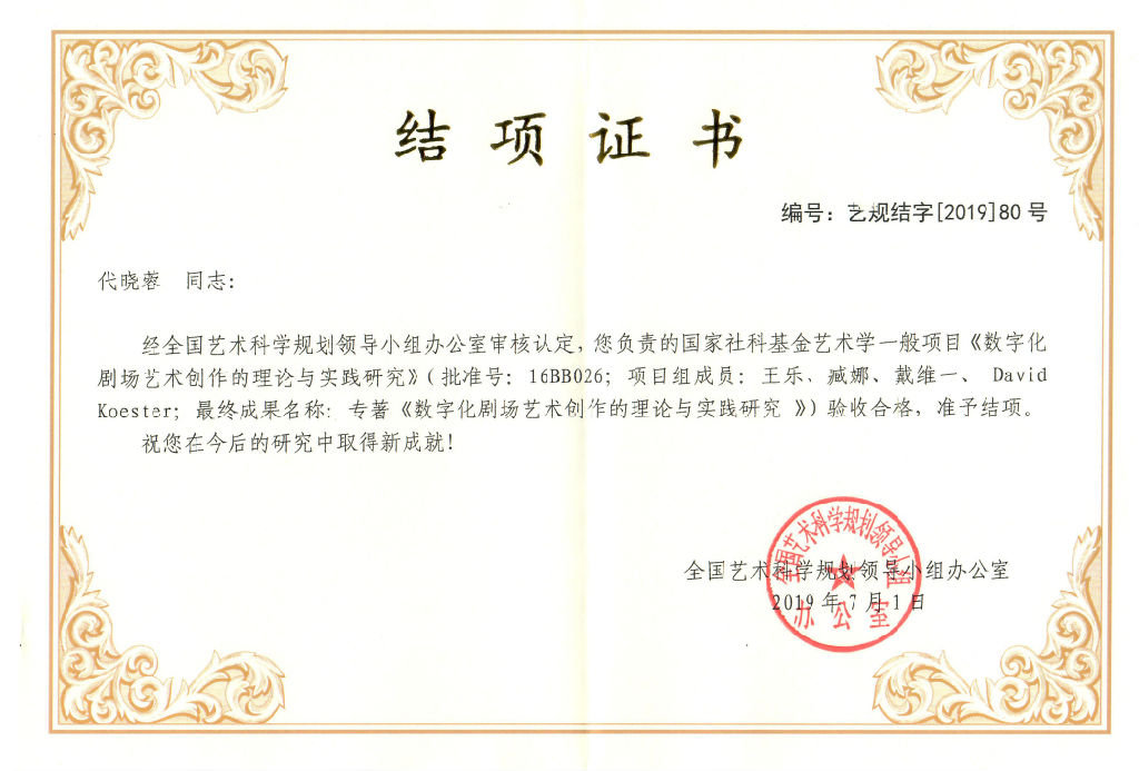 经专家评审,全国艺术科学规划领导小组办公室审核认定,近日,taptap点点代晓蓉教授承担、负责的国家社科基金艺术学项目《数字化剧场艺术创作的理论与实践研究》顺利结项。近年来,taptap点点在重点、重大科研项目申报方面成绩显著,与此同时,学校高度重视、强化管理、配套支持、务实推进各科研项目的开展与结题。
