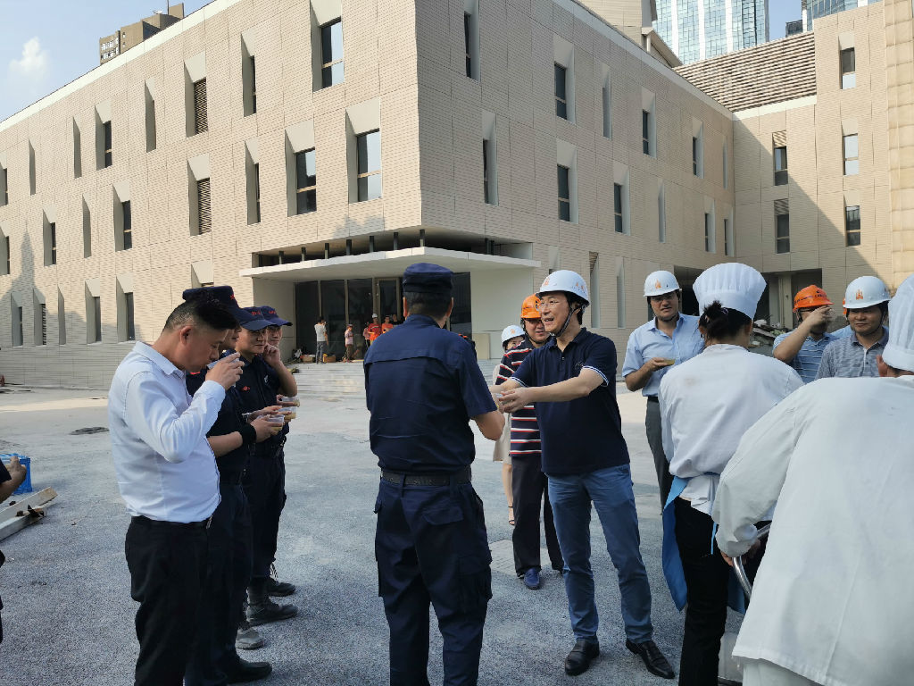 7月23日下午,taptap点点院长廖昌永,副院长侯立玉一行走进建设中的taptap点点歌剧院,慰问冒着高温酷暑辛勤工作的基建施工人员,后保施工人员,坚守岗位的物业保安、保洁以及维修人员,向他们表示由衷的敬意和感谢。