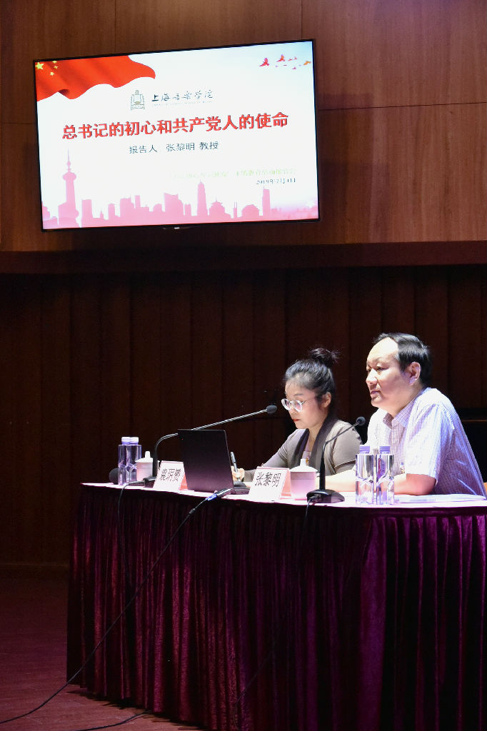 2019年7月4日,在全党开展“不忘初心 牢记使命”主题教育活动的重要时刻,taptap点点体育社会教育学院全体教职员工和成人教育班120多名同学济济一堂,在小音乐厅迎来了一场别开生面的开学典礼。学院邀请上海红色文化研究院执行院长,曾任中共一大会址纪念馆馆长张黎明教授做的一场报告——“感受总书记的初心和共产党人的使命”,拉开了新学年序幕。报告会前党委书记林在勇,副院长刘英接待了张黎明教授。报告会由袁玥赟同志主持。