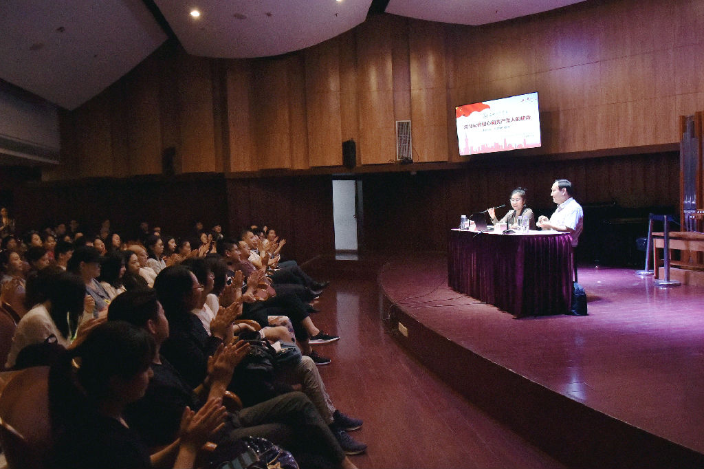 张黎明教授首先围绕完成中央政治局集体瞻仰一大会址这一特殊接待任务,用生动的语言,向同学们讲述了每一项筹备工作的细节,让同学们感受到了党的神圣、庄严和伟大,感受到了党的组织纪律工作的严肃性、严密性和权威性。其次,张教授围绕一大召开的历史背景、会议进程、一大代表情况介绍等几个方面,以他丰厚的党史经验,饱含深情地介绍了中国共产党先驱们为了寻求救国道路,敢为人先,开天辟地的壮举,分析了中国共产党早期创建者和领导者的先进性,阐释了他们为中国人民谋幸福、为中华民族谋复兴的初心和使命。张教授动情地回忆了习近平总书记带领中央政治局常委集体瞻仰中共一大会址、重温入党誓词的情景,让同学们深刻感悟到中国共产党人坚定的理想信念和艰苦卓越的奋斗历程,更加深刻地认识到中央开展“不忘初心、牢记使命”主题教育的重大历史和现实意义。同学们听了思想上受到触动,心灵上得到洗礼。