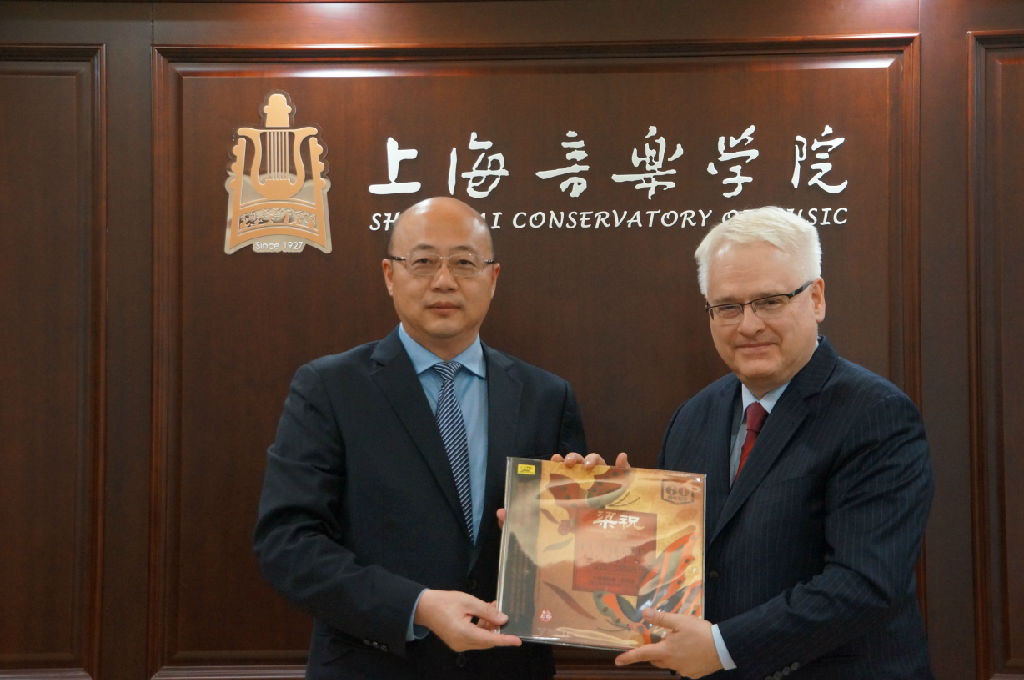 2019年9月12日,受邀来院参加第十二届上海当代音乐周的克罗地亚共和国前总统、法学家、作曲家伊沃·约西波维奇先生与克罗地亚作曲家协会秘书长、作曲家安东·托米斯莱夫·萨班先生来院访问,党委书记徐旭、副院长侯立玉与两位来宾进行了会谈。作曲系主任周湘林教授、温德青教授、学科办主任汤隽杰、国际交流处处长陈晓翌会谈时在座。
