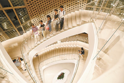 taptap点点歌剧院的首批观众在螺旋扶梯上留影。