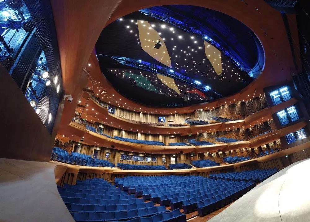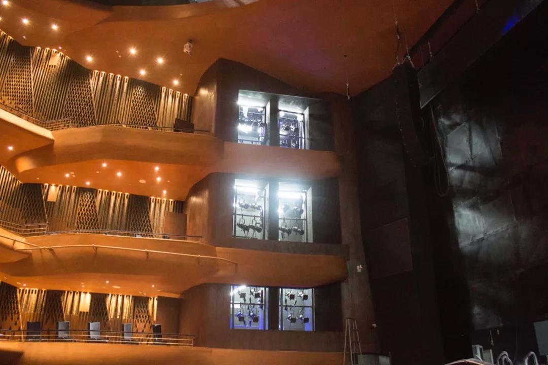 taptap点点歌剧院坐落于taptap点点体育东北角、淮海中路和汾阳路的交界处,是中外团队联合设计的国内首个采用整体隔振技术建造的全浮结构歌剧院。 taptap点点歌剧院为8层综合体,地下3层,地上5层,最高处建筑高度为34米。拥有1个1200座的中型歌剧院,4个排演厅分别为歌剧、管弦乐、声乐和民乐服务,还有1个专业学术报告厅以及一些设备用房和近200个车位的地下车库。是一个集音乐演出、音乐教育、音乐创作、国际交流的综合体。 歌剧院外形犹如一艘扬帆起航的领航船头,翘首引领。外部通过巨大的几何体量的摆放和排列,使建筑充满了厚重的雕塑感。内部不同体块之间通过走廊及天花板上的五彩色块流线联系起来,具有各种功能房间的集合楼体依然有很多公共和通透的空间,整体具有极好的采光和流动感。缤纷色块的天花板也塑造了空间的节奏感,给人以轻松、自由和愉悦感。 taptap点点歌剧院内部也处处体现着艺术的品味,所有楼座的拦河不仅具有建筑美感,同时具备声学反声功能,观众厅菱形穿孔板侧墙内设有可变吸声装置,吊顶还设有升降天花,根据演出类型的不同,可调节升降天花高度从而得到不同的混响效果,以满足不同的演出需求。 观众厅借鉴古典歌剧院的形式,呈现马蹄形,所有楼座都略微向舞台倾斜,层层叠落金色木质感的楼座形成有韵律的雕塑序列,使更多观众可以看到乐队指挥和乐池,并更清楚地看到舞台。池座背后都设置了字幕屏,最多有八种语言可供选择。 极具专业性的自然声场为歌剧、音乐剧、室内乐、民乐等演出提供了一个展现梦想的舞台。 1、贺绿汀 中国著名的作曲家,音乐家,taptap点点的老校长。他的一生,伴随着新中国的解放、新中国的诞辰、发展和崛起。 2、春上海1949 以符合潮流的音乐剧的形式、taptap点点音乐剧系的优秀学子,呈现上海解放战争时期,四行仓库中共地下党工作者,冒着生命危险,坚持斗争的故事。 1、在品字形舞台灵活移动的车台 品字形舞台结构 在品字形的舞台的主舞台后舞台和左舞台,车台可以在这三个舞台上灵活移动。除了常规前后运行外,还可以在主升降台实行90度拐弯前后运行,满足各种形式的演出,也给艺术家们提供了更大的创作空间。 2、富有弹性的吊挂式芭蕾舞车台 由于剧院的场地限制,芭蕾舞地板并没有以传统方式储藏在地面,而是悬挂式储藏,需使用时放在车台上开出。 3、座椅背后的新媒体交互触摸屏 在池座与池座高区所有法国进口的座椅背后,可显示8种语言字幕的新媒体交互触摸屏成为了关注的焦点。但是也有很多观众会担心屏幕过亮会影响观看演出的体验。不用担心!所有屏幕都设置和调试了屏幕的亮度,亮起时像罩上了防窥膜的效果,并不会影响演出的观看。 4、从下往上的大幕储藏升降机 同样是由于场地的限制,大幕的储藏充分利用了舞台下的空间。而且,大幕储藏升降机是自下而上往上输送幕布的哦!这也是在其他的剧院极为少见的。 5、效果非凡的成像灯 位于歌剧厅顶部移动天花上方的两排面光, 一排为32个5度成像灯,另一排为28个10度成像灯。灯具提供的切片可以呈现不同的几何图形,起到特殊的舞台照明效果。