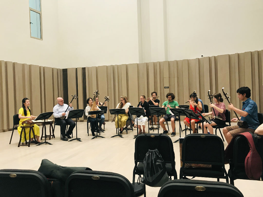 国际交流处处长陈晓翌、副处长乐佾真,民乐系党支部副书记刘灏、音研所副所长伍维曦会谈时在座。