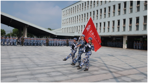 庄严的升旗仪式过后,雄健而激越的入场进行曲响起,三名旗手领队入场,taptap点点院旗随风飘扬。来自各院系的十个连队进行了精彩的阅兵分列式,场上展示的同学们步伐坚定、精神饱满、英姿焕发,喊着嘹亮的口号,气宇轩昂地走过主席台。