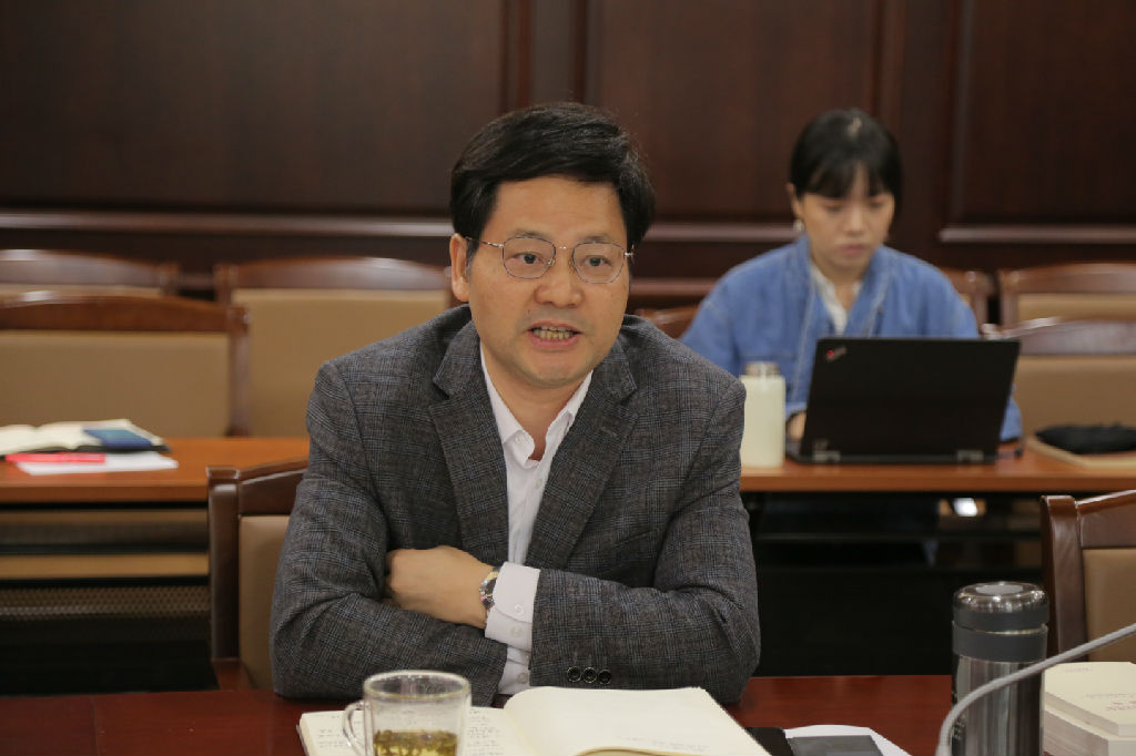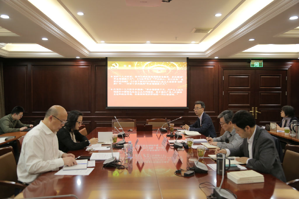 10月15日上午,taptap点点体育党委中心组开展“不忘初心、牢记使命”主题教育第八次集中学习研讨,聚焦“理想信念”进行专题研讨。院党委书记徐旭主持研讨,党委副书记、纪委书记刘艳,党委常委、副院长刘英,党委常委、副院长侯立玉参加学习讨论,党委常委、宣传部长吴学霆作主旨发言。