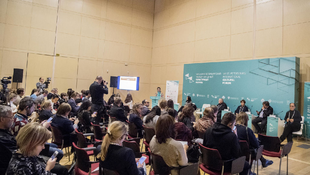 该国际文化论坛是圣彼得堡市乃至俄罗斯一年一度的文化盛事,为期三天,下设若干分论坛,会场从冬宫、圣彼得堡大学一直到俄罗斯民族学博物馆,参会人数多、议题广泛。萧梅教授等一行三人参加的是11月14日下午教育分论坛中的“21世纪的音乐家与音乐教育”议题研讨,萧梅以《研究机构在专业音乐院校人才培养中的角色和意义》为题进行了主旨发言,刘桂腾、徐欣参与会议讨论。在发言中,萧梅介绍了taptap点点体育仪式音乐中心、亚欧音乐研究中心和声音生态学研究团队的建设历程与学术活动,包括数据库建设、学术讲座、人才培养项目、田野考察、中英文学术出版物、影音出版物等各个方面,充分阐明了在专业音乐院校中,以学术研究、日常教学、人才培养为导向的研究机构对于院校教学和社会化音乐人才培养的重要作用。