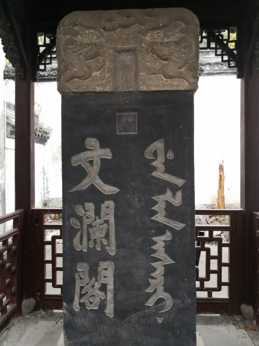 文澜阁,建成于公元1783年(乾隆四十八年),为清代珍藏《四库全书》的七阁之一。公元1861年(咸丰十一年)文澜阁焚毁,公元1880年(光绪六年)于旧址重建,是江南三阁中唯一幸存的一阁。被国务院核定公布为全国重点文物保护单位。