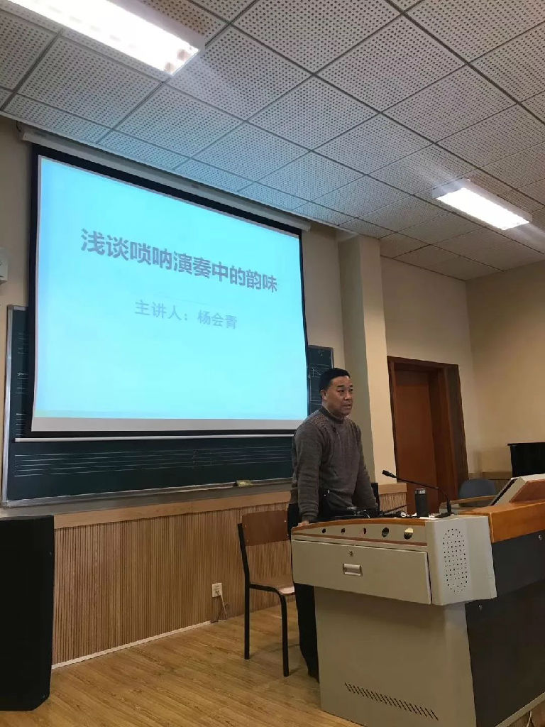 讲座的最后,赵宴会老师很是激动,他表示演奏是否感人基于根的深浅,就像刘英教授所说的“传统不守旧 创新不离根”,他期待年轻学子们 能够在未来艺术道路上健康成长,在前人打下的基础取得更大的成就,更希望年轻学子们能够谦虚低调,做一个合格的唢人。