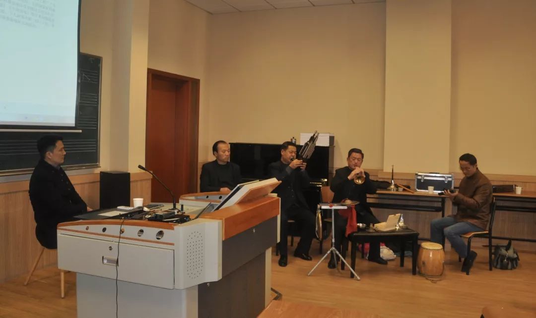 下午唢呐专家吴彤、杨会青、赵宴会分别以“百年宏音”、“浅谈唢呐演奏中的韵味”、“唢呐曲《百鸟朝凤》的‘前世’与‘今生’”为题进行学术探讨,讲座内容丰富,各位专家生动的讲解使得现场听众受益匪浅。