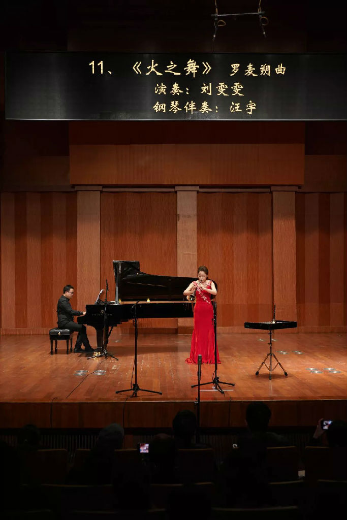 作为《祁连音画》三首乐曲中演奏难度最大的一首作品,《飘雪》在竹笛研究生吴双同学驾轻就熟的演奏中显得那么优美动听,信手拈来,使观众仿佛置身白茫茫的雪景,一片片飞舞的雪花优雅精致的掉落,从容淡定的演奏展示了她高超的演奏水平和刻苦努力的学习精神。