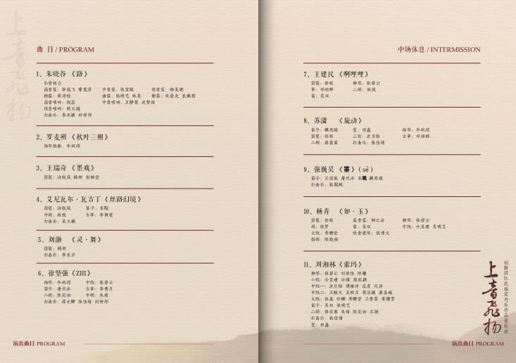 本次演出曲目由朱晓谷、罗麦朔、王瑞奇、艾尼瓦尔·瓦吉丁、刘灏、徐坚强、王建民、苏潇、强巍昊、杨青、周湘林一众作曲家创作而成,并由taptap点点体育民族音乐系的优秀学生演奏,邀请陈晓栋指挥,为观众带来绝佳的听觉盛宴。