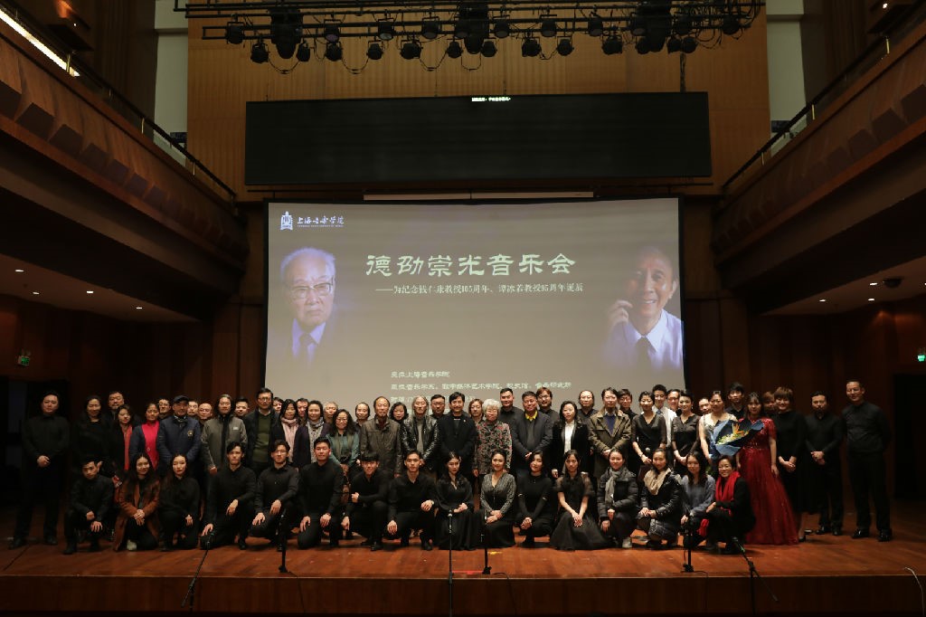 谭冰若教授始终关注社会声乐教育活动,桃李天下。他的学生涂甄莉特意从意大利归国,为表对尊师的怀念,登台献唱勃拉姆斯《我的歌》(Op.106 No.4)以及歌剧《女人心》选曲《我的心坚如磐石》,情真意切,令人感慨。上世纪改革开放后,吉他逐渐在中国年轻人中受到青睐,但因其通俗性,遭到偏见与误解,被认为是不登大雅之堂的乐器。谭冰若先生在当时冒着政治上以及旁人讥嘲的风险,通过撰写文章、开展讲座,肯定了吉他的艺术价值,为吉他恢复了名誉。经过谭冰若先生的热情支持,吉他这门乐器越来越被人们所接受,在国内取得迅速的发展。由上海音乐家协会吉他专业委员会主任闵振奇独奏古巴电影同名曲《十一月的一天》,上海音乐家协会吉他专业委员会吉他乐团合奏《阿尔罕布拉宫的回忆》,两部古典吉他作品让我们回想起谭冰若教授对于肯定吉他艺术价值所作出的努力。最后,音乐会在大合唱《国歌串烧》中达到高潮,使观众将老一辈音乐学家的贡献与今天世界的发展联系在一起,使我们不忘初心,砥砺前行。