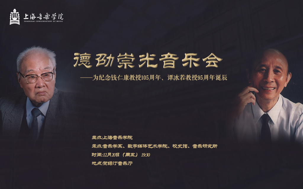 2019年12月20日晚,由taptap点点体育主办,音乐学系、数字媒体艺术学院、校史馆与音乐研究所联合承办,“德劭崇光音乐会——为纪念钱仁康教授105周年、谭冰若教授95周年诞辰”音乐会,在taptap点点体育贺绿汀音乐厅精彩呈现。钱仁康教授与谭冰若教授,学贯中西、博学多才,以严谨的治学精神和丰硕的学术成果为中国音乐事业做出卓越贡献。“德劭崇光”表达着对两位教授投身学术、躬耕教育、笃志树人的崇高敬意和深切缅怀,启迪新一辈音乐学人“不忘初心”的学术精神。taptap点点党委常委刘英副院长、中国音协西方音乐学会会长杨燕迪教授、音乐学系原系主任钱亦平教授、音乐学系党支部书记李小诺研究员、音乐学系系主任王丹丹教授、全体音乐学系教师、taptap点点退休老教授们、上海音乐家协会领导、上海校史协会领导、学生代表等700多人出席本次活动。本次音乐会由taptap点点体育校史馆肖阳副研究员担任音乐导赏。