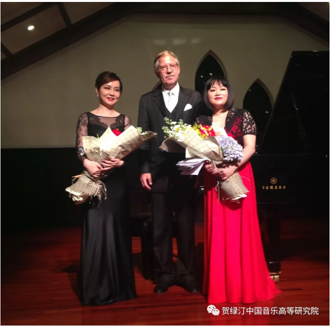 2015年唐瑾与朱和在上海理工大学德国文化交流中心合作演出后,与德国驻上海前任总领事芮欧先生合影