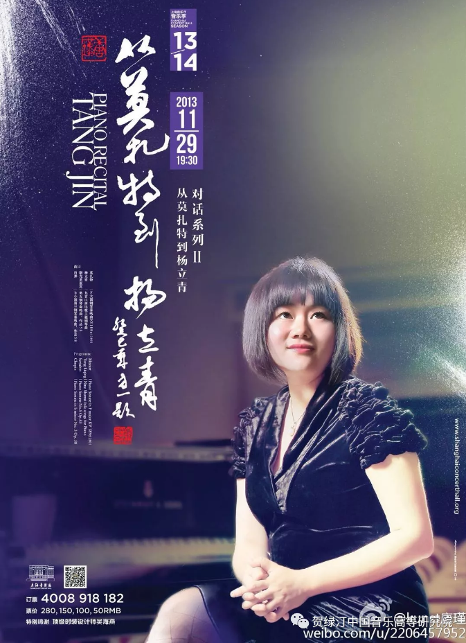 2013年唐瑾在上海音乐厅举办《从莫扎特到杨立青》钢琴独奏会之海报,纪念杨立青先生辞世