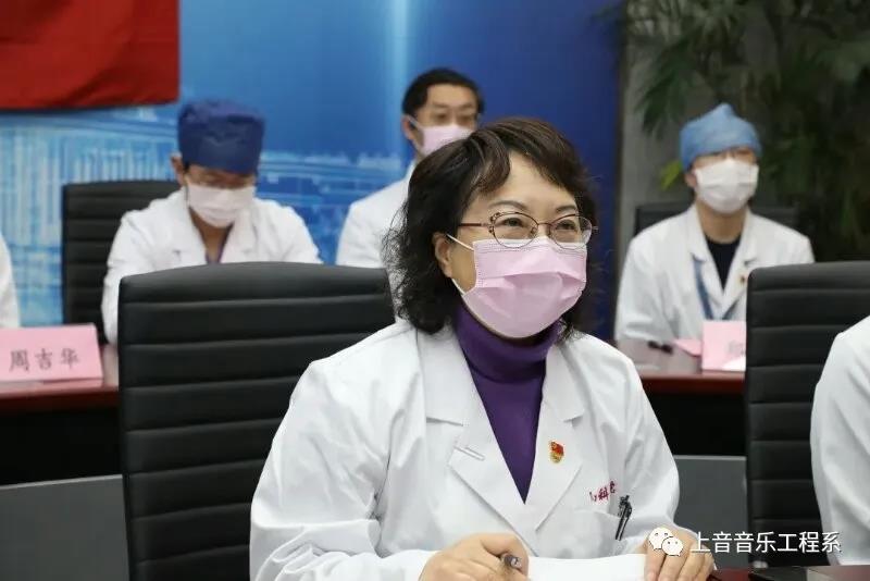系党支部书记李捷代表全体师生向一线医务工作者表达了崇高的敬意,汇报了自疫情以来音工师生创作情况,希望通过支部共建,听到一线需求,让创作更有生命力,服务更有针对性。