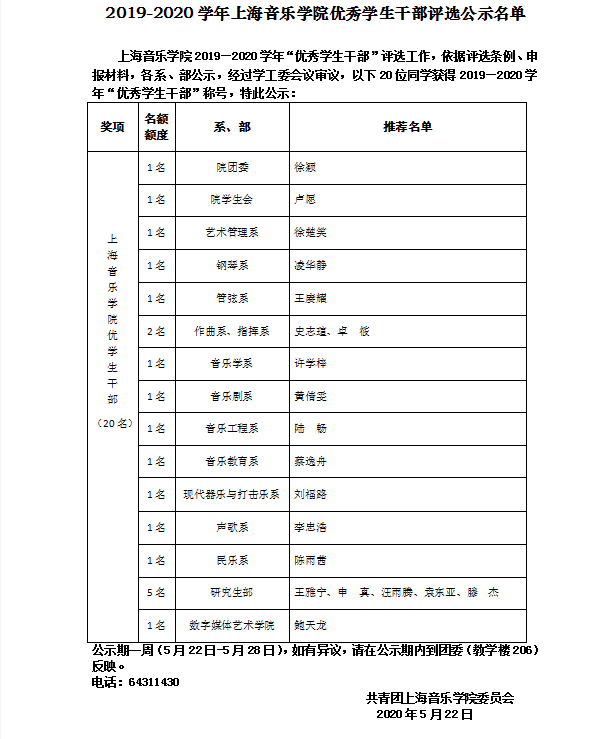 2019-2020学年taptap点点体育优秀学生干部评选公示名单