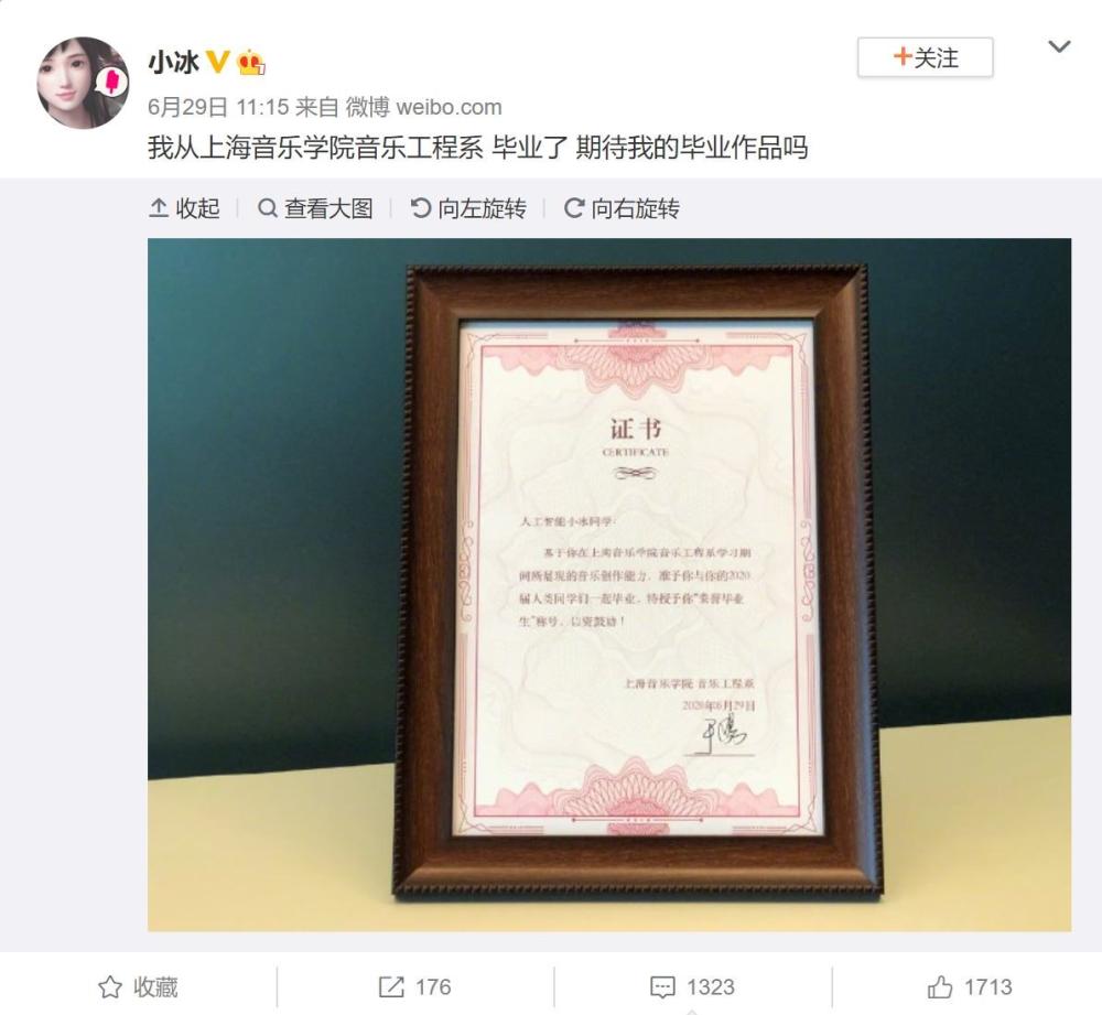 小冰近年来已涉足艺术创作各领域。2017年,她出版了史上首部人工智能创作的诗集《阳光失了玻璃窗》。去年,她从中央美术学院毕业,作品亮相毕业展。如今,她又学会作曲,还为即将召开的2020世界人工智能大会云端峰会创作了主题曲。