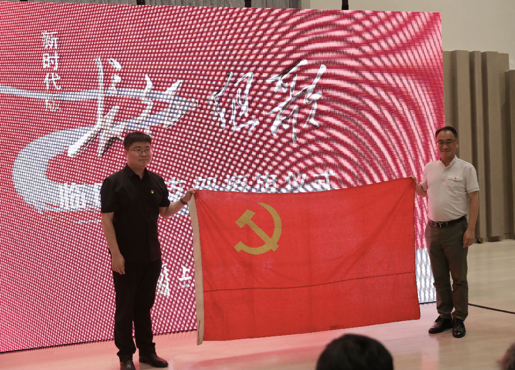 院委副书记、副院长徐卫向《长征组歌》剧组临时党支部书记郭恺授旗。嘉宾及taptap点点领导师生代表共同触屏点亮五角星,开启新征程。