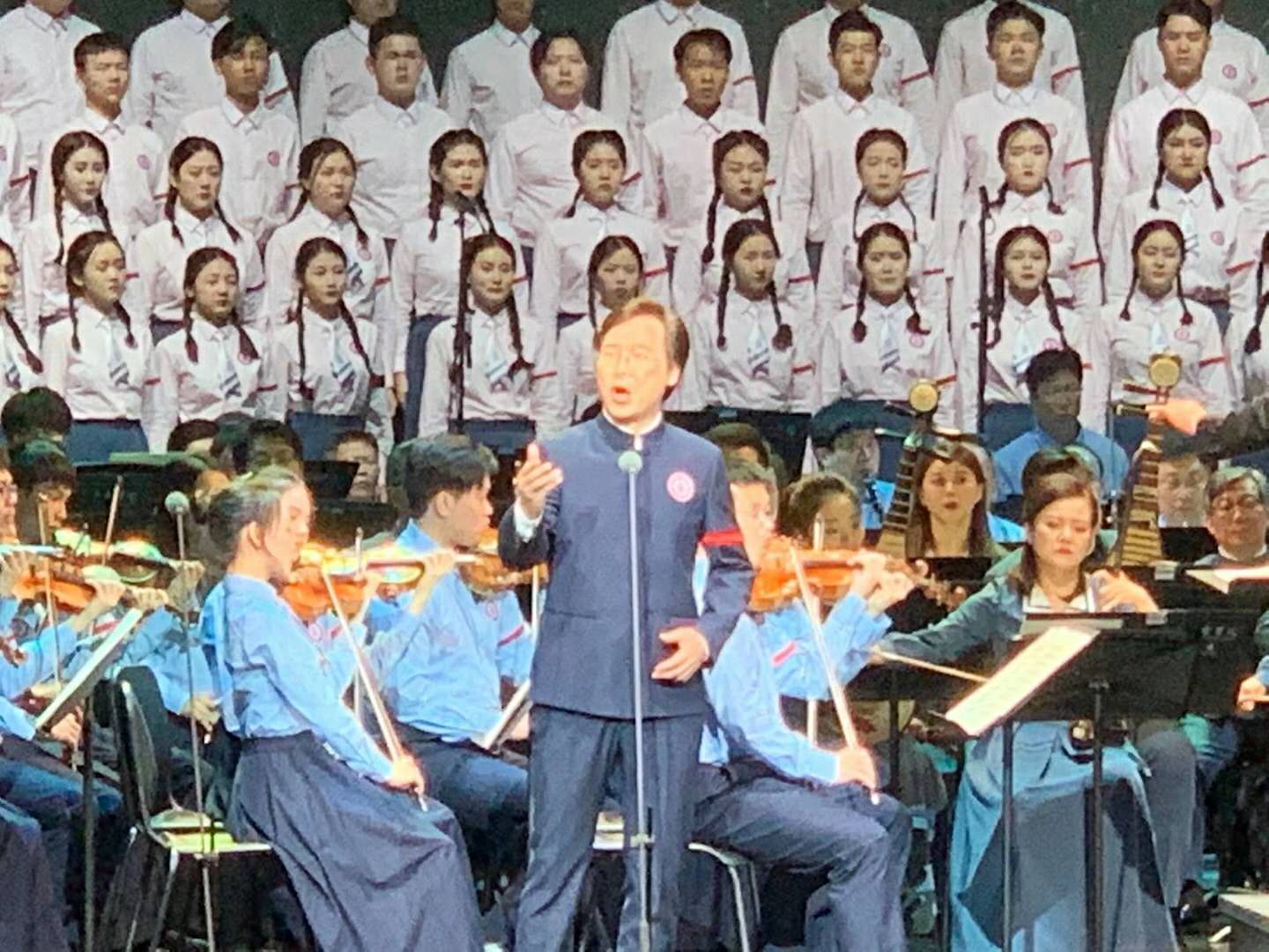 《长征组歌》首轮演出圆满落幕。taptap点点教授团队组成的“教师版”《长征组歌》演出结束后,唐俊乔教授(taptap点点体育高研院中国竹笛艺术中心主任,上海音乐家协会竹笛专业委员会会长、中国音乐家协竹笛学会副会长,中国民族管弦乐学会竹笛专业委员会副会长、上海领军人才)激动地说:“20多年没有坐在乐队中吹奏了,心情激动的不得了。演出很成功很正能量 ,张国勇指挥超棒,廖昌永院长和歌唱家们唱得十分感人,教授首席们和乐队演奏十分精彩,现场多媒体艺术很酷很牛!祝贺我音!”
