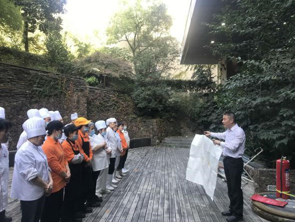 (四)组织食堂员工参加消防知识专题培训。食堂是高校安全防火重点场所,各类用火、用电、用油设备较多,与全体师生日常生活息息相关,因此食堂消防安全是学校消防安全的重要组成部分。1118日,后勤保卫处组织开展了汾阳路食堂从业人员消防安全知识和预防火灾培训。后保处副处长金华彪介绍了学校食堂消防安全管理工作和日常安全检查的基本要求,要求食堂员工根据食堂工作岗位的性质,严格落实消防安全责任,及时消除消防安全隐患,扎实做好消防安全工作,同时向食堂员工详细讲解了灭火器及灭火毯使用方法与注意事项。