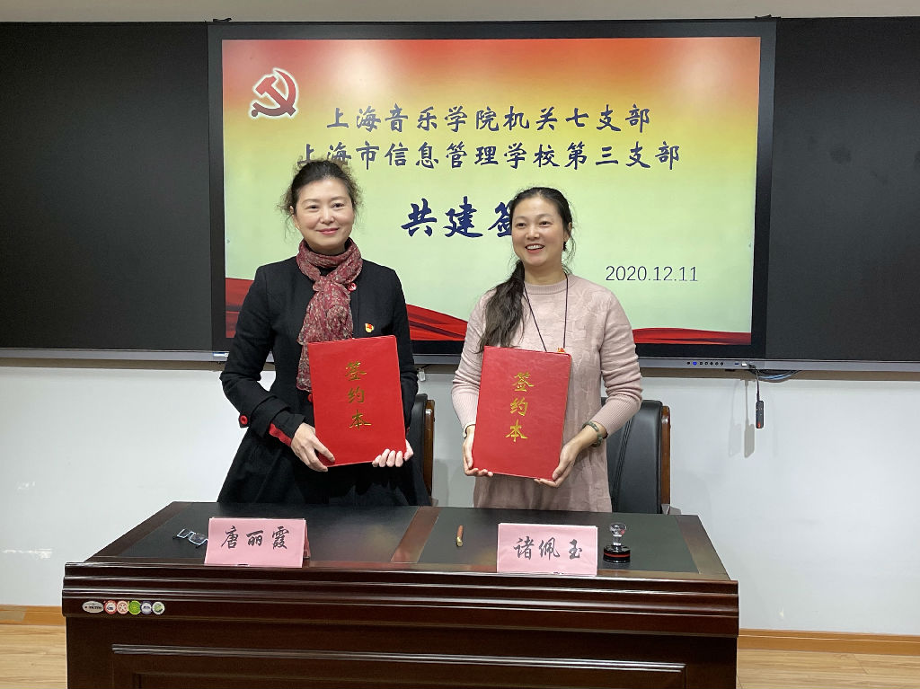 唐丽霞与第三党支部书记诸佩玉共同签订了《支部共建协议书》,确定了此次结对共建的工作形式、工作内容和工作要求,并就下一步的工作计划交换了意见。此次共建活动旨在形成“以共建促党建,以党建促业务,以业务强党建”的良性循环,共同发展基层党建工作的新格局,从“主题党日活动”、“教育教学资源共享”、“特色工作联盟”、“社会实践基地”四个方面入手,丰富双方主题党日活动内容,同时为纪勋学校的特殊学生开设音乐教育课程,普及音乐基础知识与技能,缓解特殊学生心理、情绪等方面的问题。为特殊学生提供实习岗位,加强文艺教育活动交流等。
