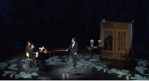 一台钢琴加上一案一椅、一组书画配上一对瓷瓶,2019年廖昌永与钢琴家孙颖迪在“歌曲之王”舒伯特的故乡维也纳,开启了一场别开生面的独唱音乐会。中国诗词中特有的简约深邃的意境随着他的歌声传递给了所有亲临现场的欧洲爱乐者。