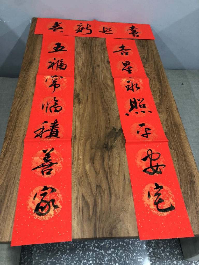 气温骤降的户外寒风刺骨,图书馆大厅却是一副喜乐祥和的景象。闻讯而来的师生早早来到活动现场,书桌旁聚满了热切等待的人群。有的在挑选自己满意的联语,有的在帮书法家铺纸递墨。“布谷迎春叫,千牛接福来”,“欢度新春节,高歌小放牛”。在书法家笔下,一幅幅流畅秀丽的春联跃然纸上,一行行俊逸的书法,一句句真诚的祝福,寄托了辞旧迎新,接福纳祥的美好愿望,为2021年的新春带来了和谐与温暖。