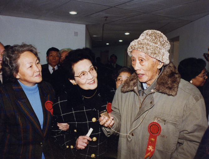 1997年,老院长贺绿汀出席taptap点点体育建校70周年纪念活动。