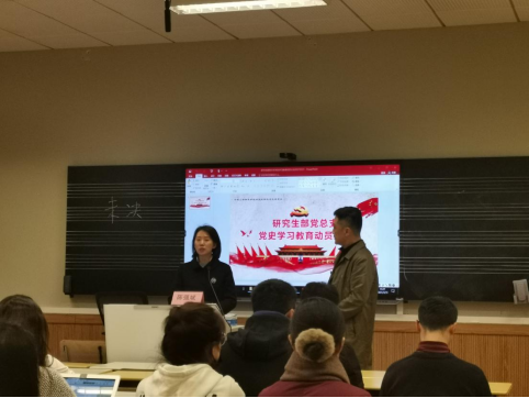 2021年3月31日下午,研究生部党总支召开党史学习教育动员大会,并开展首场专题讲座,参加本次活动的有研究生部全体教工党员、各学生党支部委员、研究生党员代表、团总支委员、入党积极分子。本次活动由研究生部党总支副书记、研究生部副主任欧阳佳沁主持。