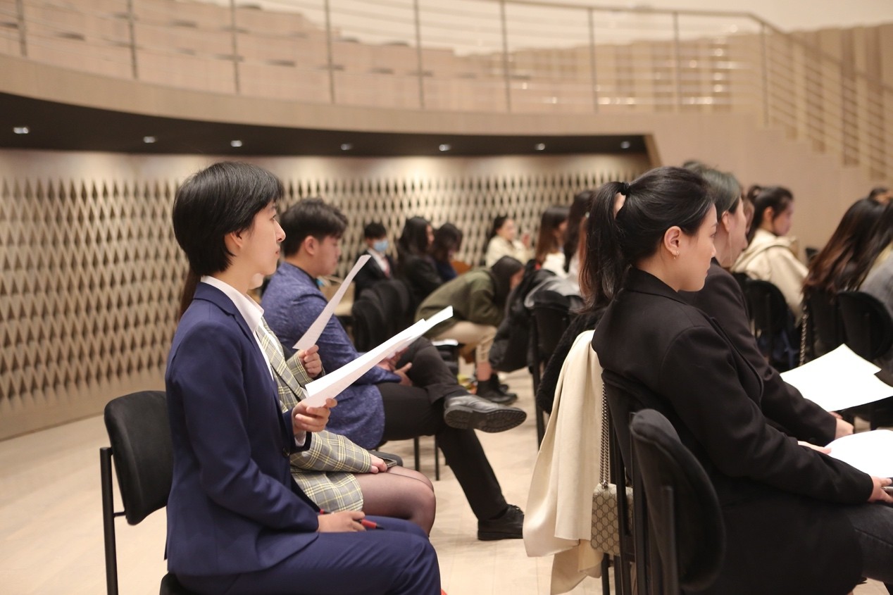 当晚,上海戏剧学院台词口语专业的马聪老师还为选手们带来了一堂培训课,教授选手们如何使用自己的嗓音,用语言提升语音的情感表达。现场马老师与同学们进行了实训练习,根据同学们各自的特点依次进行指导。