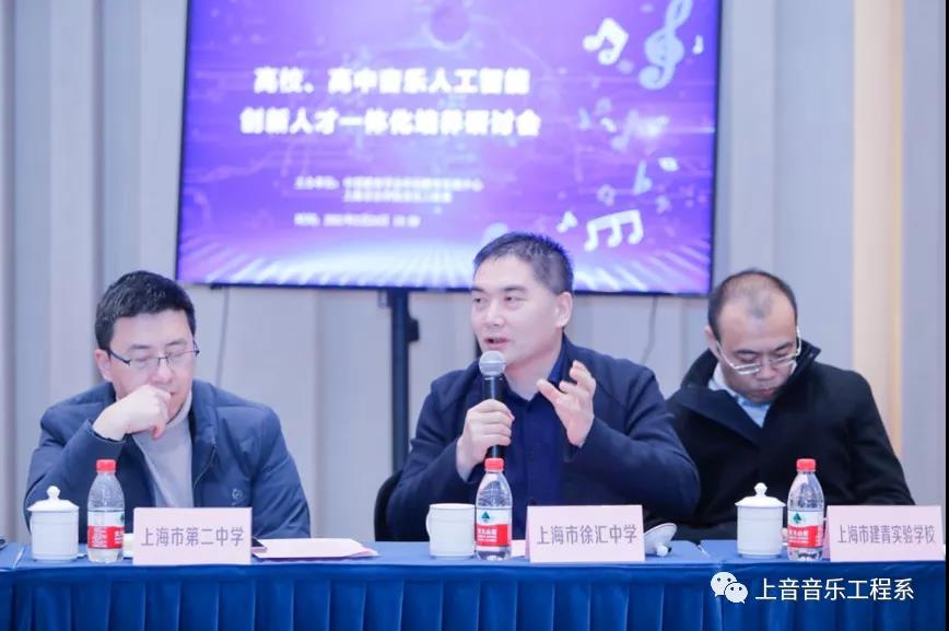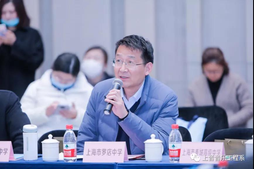 随后,上海市大同中学校长郭金华、上海市徐汇中学校长曾宪一、上海市罗店中学校长严卫东轮流进行了交流研讨,发表了参会感想。大同中学校长郭金华分享了大同中学开展计算机音乐创编以来取得的成绩;徐汇中学校长曾宪一介绍了徐汇中学科创课程并建议科创中心与高校合作,为中小学提供进阶的科创与艺术类课程服务;罗店中学校长严卫东就科技与艺术的跨学科课程在高中校园内的开展前景发表了感想与展望。