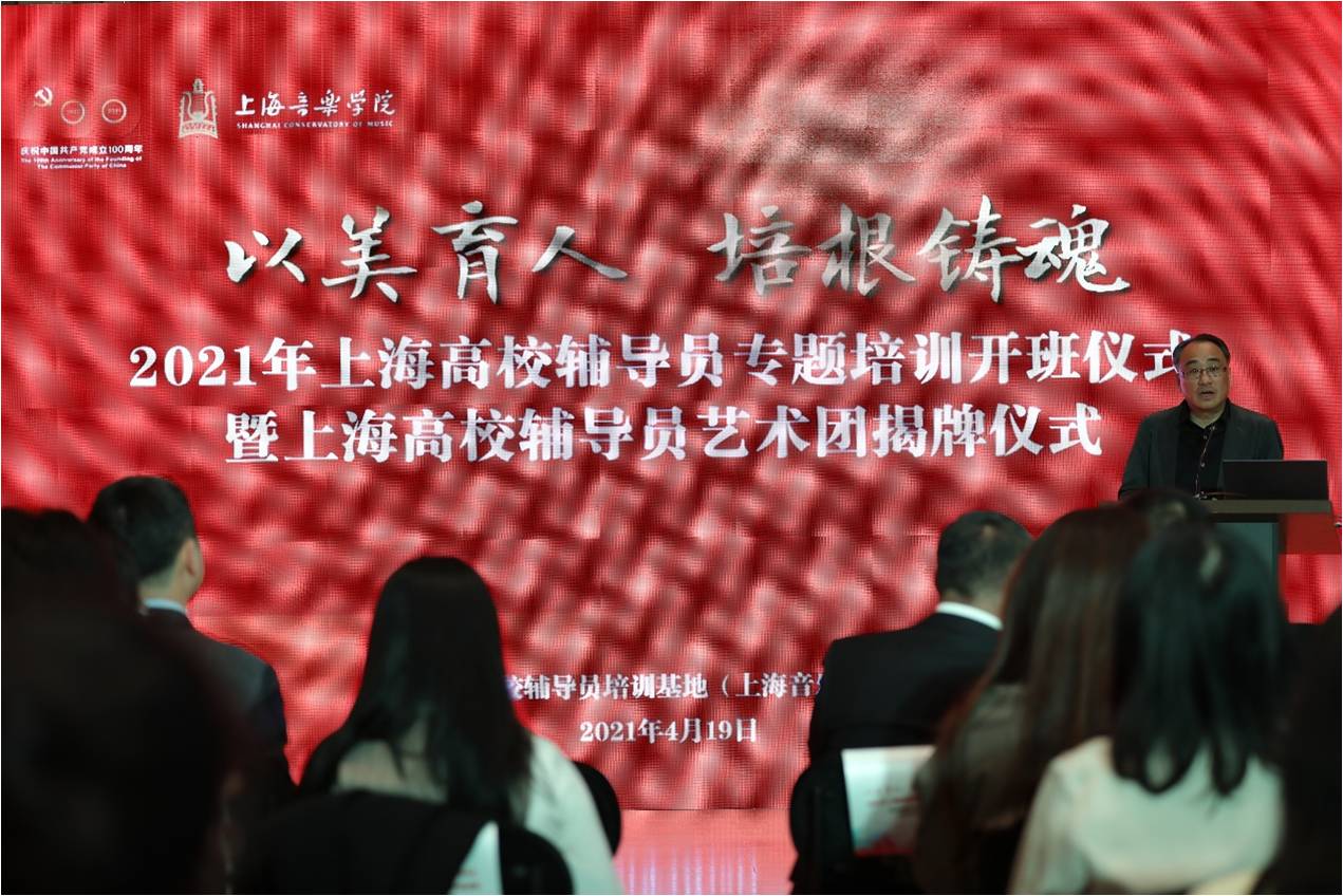 4月19日,“以美育人、培根铸魂”2021年上海高校辅导员专题培训开班暨上海高校辅导员艺术团揭牌仪式在taptap点点歌剧院管弦排演厅举行。上海市教委德育处处长沙军、副处长杨长亮,taptap点点体育党委副书记、副院长徐卫,taptap点点体育党委副书记曹荣瑞,来自上海各高校有较好音乐基础和艺术素养的培训班全体51位学员,上海市各高校院(系)党委(党总支)副书记、学工组长、团委(团总支)书记,专职辅导员代表等一同出席开班仪式。