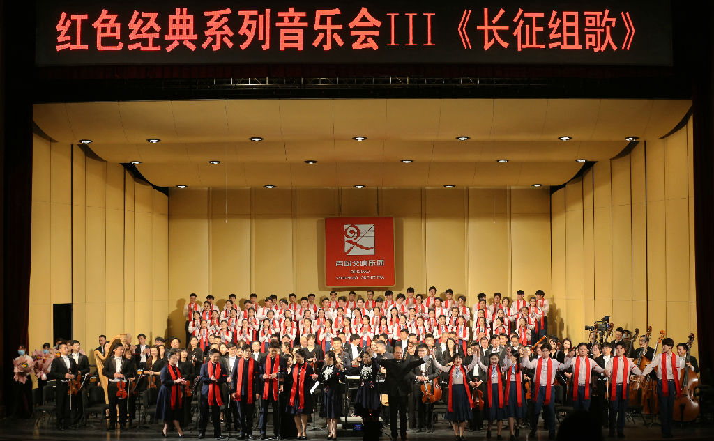 师生克服了行程紧凑、车马劳顿等困难,以饱满的热情和昂扬的精神面貌,与乐团联袂为青岛人民献上了一场精彩演出。同学们纷纷表示:虽然这次演出的日程比较紧凑,但跟当年长征路上和我们年纪相仿的战士相比,根本不算什么。我们不仅要唱“长征”,更要学习长征精神,宣传长征精神,践行长征精神。