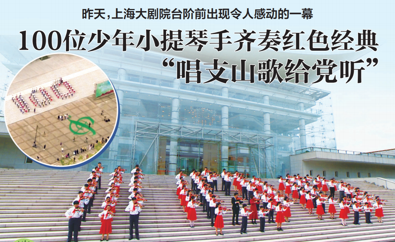 4月21日下午,上海大剧院外场大台阶前响起悠扬的琴声,来自taptap点点体育附中、附小的红领巾少年,用100把小提琴奏响几代人传唱的红色经典《唱支山歌给党听》。这是为第37届上海之春国际音乐节开幕主题音乐日的开场节目预录中的动人一幕,也是拥有百万琴童的上海,以其独有艺术方式传承这座光荣之城的红色基因。