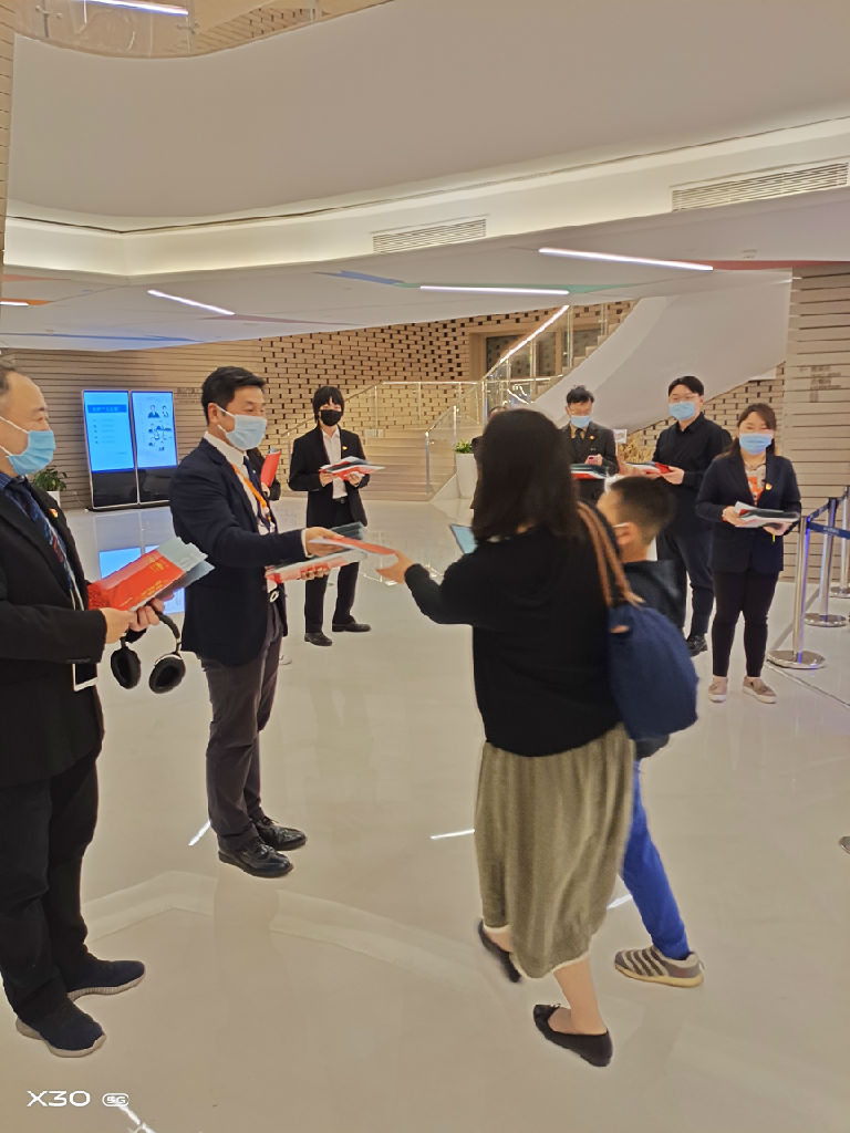 管弦系作为承办单位,在带领乐团成员们认真做好排演工作外,党总支也将党史主题学习教育融入到艺术实践活动中,组织带领全体党员师生开展“我是党员志愿者”主题党日活动。演出当晚,管弦系师生党员一行在总支书记盛利和系主任兼总支副书记刘照陆的带领下,提前进入歌剧院正厅,领取并为观众发放节目单。着正装、配党徽、一字排开的队伍成为了当晚音乐会前厅一道惹人注目的风景。观众中的校内师生和社会友人看到两位系领导也都上前寒暄,感叹我们舞台上的演奏家们台下的平易近人,纷纷拍照合影留念。此后全体党员师生观摩了音乐会。