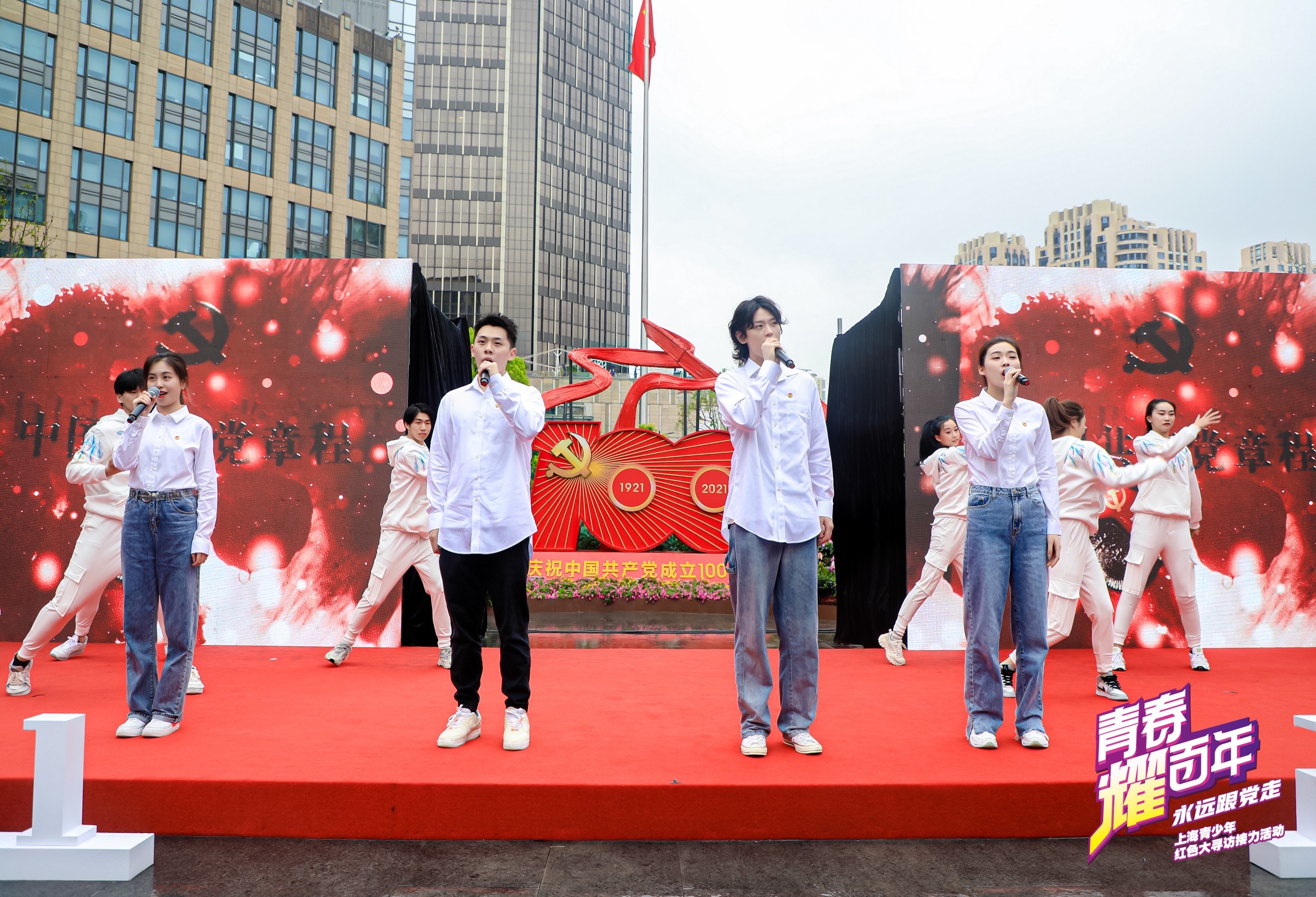 5月4日团市委在中共一大纪念馆国旗广场举办“青春心向党 奋进新时代”上海青少年庆祝中国共产党成立100周年“五四”主题集会暨“党的诞生地”上海青少年红色大寻访接力活动。近千名青少年以中共一大纪念馆为起点、杨浦滨江为终点,在“星火燎原”“初心如炬”“实干兴邦”“勇立潮头”四条线路的实地探访和沉浸体验中学习党史知识,传承红色基因。我系毛珏懿、林燕婷、张旭辰、蔡淇四位同学受邀参与此次活动,并演唱歌曲《少年》。回首过去、壮怀激烈;展望末来、任重道远!同学们表示作为一名taptap点点学子,一定要坚定理想信念、志存高远、脚踏实地、勇于担当,牢记前辈们的精神,努力提高自己的思想觉悟,认真学习专业知识,提高专业素养,带着时代责任感与使命感,不忘初心跟党走,坚定地朝着目标勇敢前进!