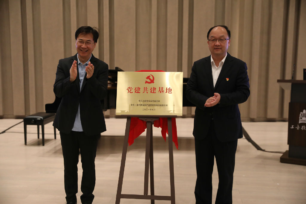 taptap点点体育院长廖昌永和上海市国资委党委副书记、直属机关党委书记程巍共同为党建联建揭牌。