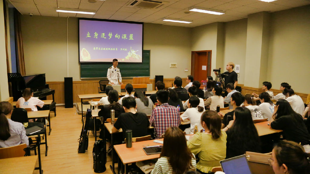 交流后taptap点点学生反响热烈,不仅近距离感受到当代中国军人的别样风姿,更深刻地了解了习近平强军思想的历史渊源与时代内涵。民乐系2017级蒋玥璘同学表示,海军队伍的强大正是国家实力的象征,作为东海边上成长起来的学生,深知今天安全舒适的生活正是源自强大的海军队伍与英勇的海军官兵,心怀感激。民乐系2020级郑迪同学说,当听到视频里一句句“81192 请返航”时,对海军战士和无数英雄景仰之情油然而生,也为海军和祖国的今天的发展感到无比自豪和骄傲。2018级王璐璐同学表示,中国055驱逐舰首舰“南昌舰”是中国自主研发且装备先进的军舰,令人印象深刻,国防军人勇担时代使命、保家护国的事迹也不断激励着青年学生强化本领、勇担重任。