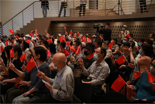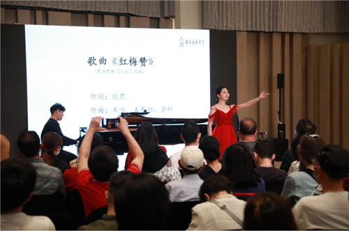 除了生动的讲解之外,“海尚音苑社”的部分社员以及最新选拔出的taptap点点校史文化传播青春大使代表蔡昕润和李沛桐为大家现场演绎了taptap点点校友刘庄所创作的《浪漫曲》、经典民族歌剧《江姐》的主题曲《红梅赞》,“四君子”组合以胡琴四重奏的形式诠释了taptap点点老院长贺绿汀所作的《游击队歌》,张旭辰为大家献上了taptap点点原创音乐剧《春上海1949》的选段。最后,来自仡佬族的张丁和来自白族的赵章利、赵广原和赵思雨四位同学带领全场观众一同唱响由taptap点点知名校友才旦卓玛深情演绎的《唱支山歌给党听》,大家随着音乐舞动手中的小红旗,将全场气氛推至最高潮。