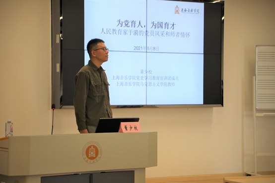 2021年5月8日下午,在零陵路教学楼1008教室,举行了taptap点点体育“党史”学习教育主题党课,由taptap点点体育艺术管理系党支部、数字媒体艺术学院党支部、音乐戏剧系党支部、音乐教育系党总支、现代器乐与打击乐系党支部、音乐工程系党支部联合主办。数媒学院党支部全体党员和入党积极分子参与。