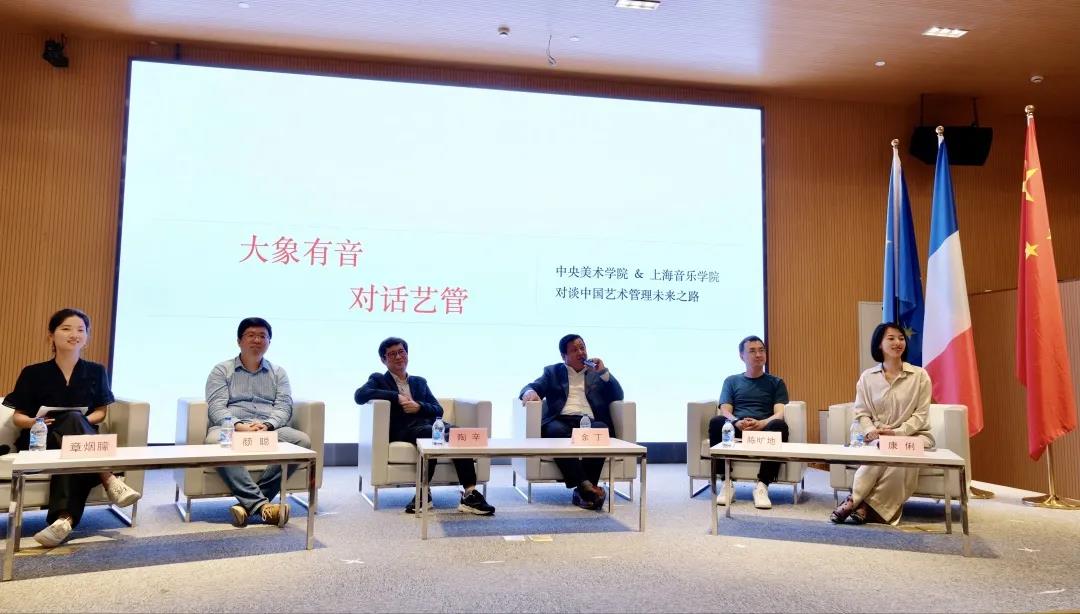 在演讲后,由央美中法学院党总支副书记康俐老师和中法学院章烟朦老师共同主持了接下来的嘉宾对谈。taptap点点艺管陶辛教授、颜聪老师,央美中法学院余丁院长、陈旷地老师围绕“中国艺术管理未来之路”这一主题进行了深度对谈,提出具有洞察力和前瞻性的思考。
