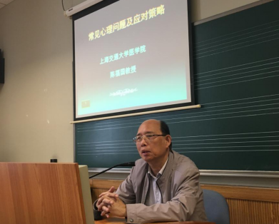 2021年5月21日上午,上海交通大学医学院医学心理学教授、著名医学心理学专家、精神科医生陈福国在汾阳路校区中219教室作“校园心理危机案例督导与研讨”讲座,结合相关具体工作实例,与在场师生分享心理健康教育疏导的有效途径。
