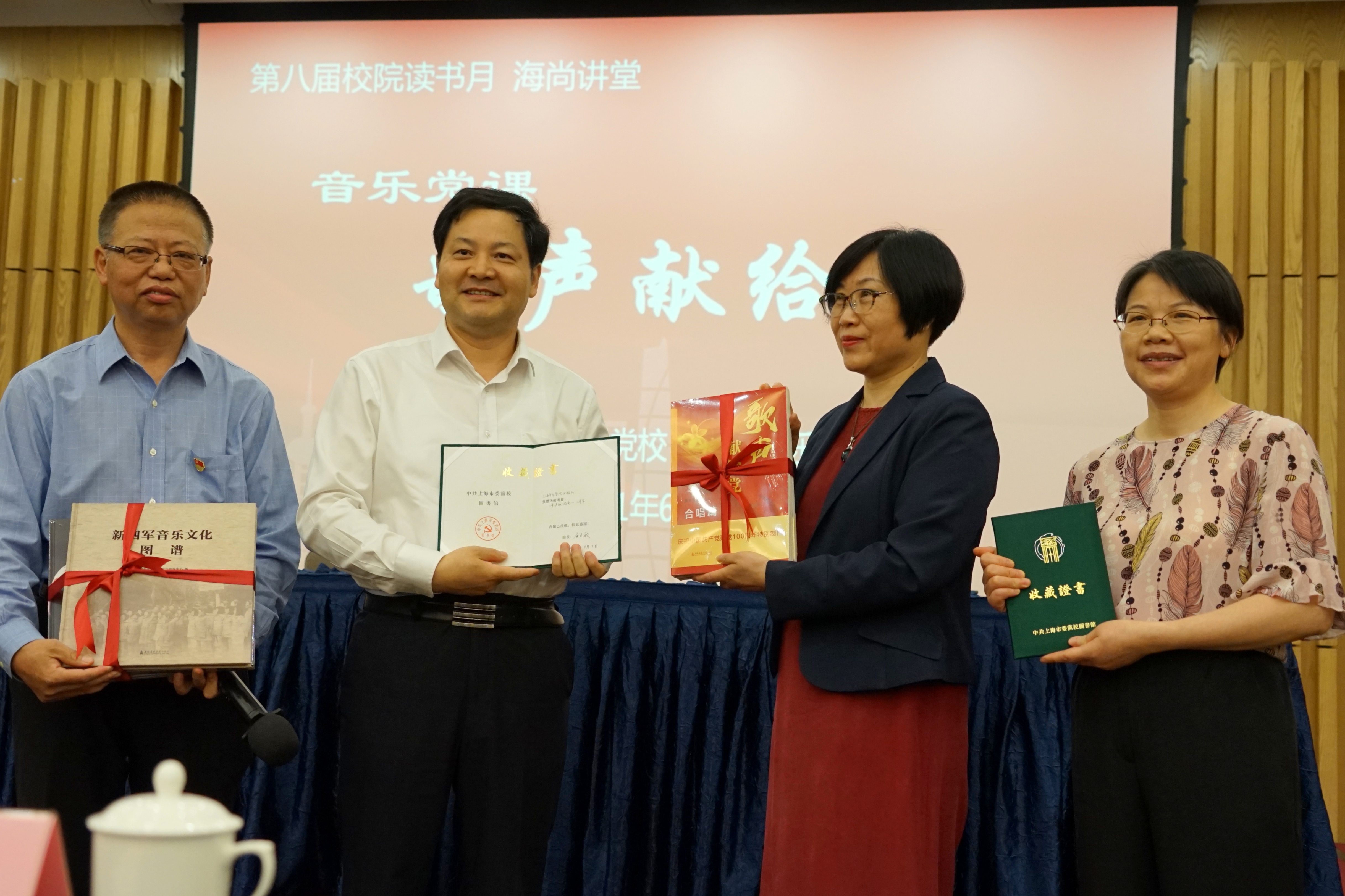“音乐党课”开始前举行了简短的赠书仪式,中共上海市委党校研究生部主任、党支部书记袁峰主持赠书仪式。