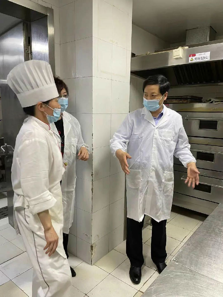 侯立玉详细询问了食堂天然气的日常维保、油烟管道清洗等情况,现场查看了生制品、熟制品的存放,对冷库、煤气报警系统进行现场检测,查看了逃生通道、以及各类台账记录。他要求食堂管理人员要及时公示第三方检测煤气设备合格报告,加强对电气线路检查频次,对老旧的、已到报废年限的厨房设备及时进行报废处理及设备更新,同时要确保逃生通道畅通无阻,食堂人员要定期体检,不得带病上岗。侯立玉强调,安全是底线,我们要始终以师生安全为重点。近期梅雨季节,闷热潮湿,食物容易变质,要特别注意食品安全,所有食物必须烧熟烧透,并做好留样。必要时,向学校相关部门申请除湿设备,确保食堂仓库等地方的干爽。